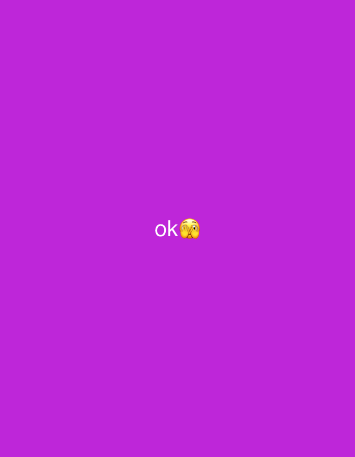 A purple backdrop fills the frame. In the center, closer to the bottom edge than the top, appears the word "ok" followed by a peering emoji. The emoji has wide, concerned eyes peering from behind hands.