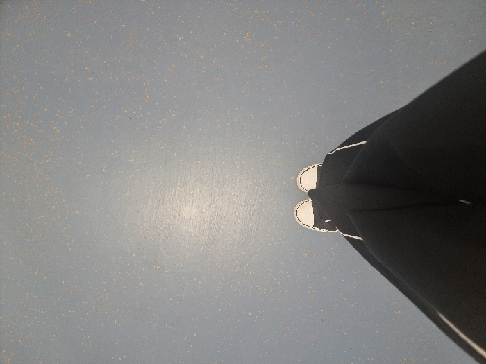 - "The image displays a downward-angled, first-person perspective of an individual's lower body within an interior setting in Jaunmārupe, Latvia" by FM-eDsUh1, licensed under CC BY 4.0