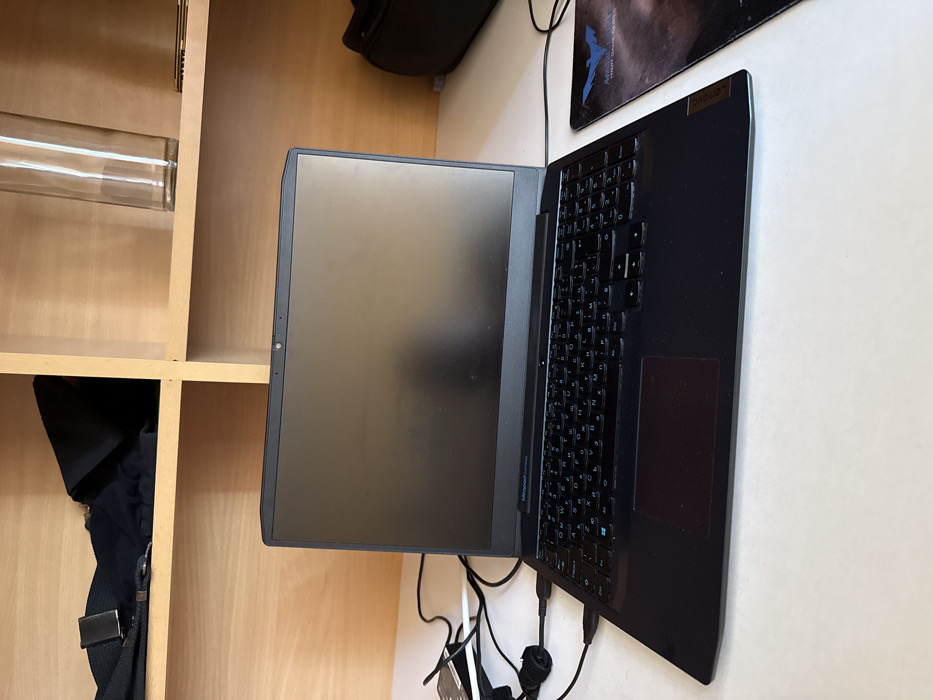 - "The image displays an indoor scene featuring a black Lenovo IdeaPad Gaming laptop, open with a dark, reflective screen, resting on a white desk surface" by FM-F9bah1, licensed under CC BY 4.0