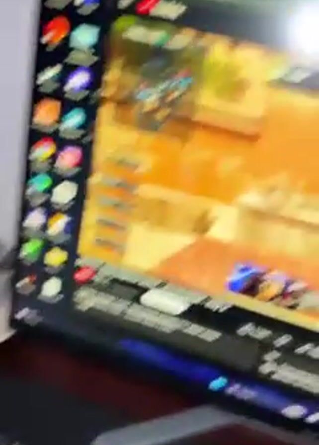 desktop computer with a keyboard in the foreground and a monitor in the background. The monitor displays a YouTube video of a first-person shooter game. The camera then pans up to show a person with short dark hair wearing a black shirt. The person makes a kissy face and says "Yo." The background is a white wall.