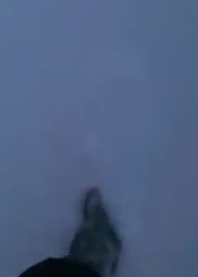 A person walks through deep snow. The snow is so deep that the person's legs sink into it with each step. The sky is overcast, and the lighting is dim. In one shot, the street is covered in snow, and a street light is visible. The video appears to be taken from a first-person perspective.