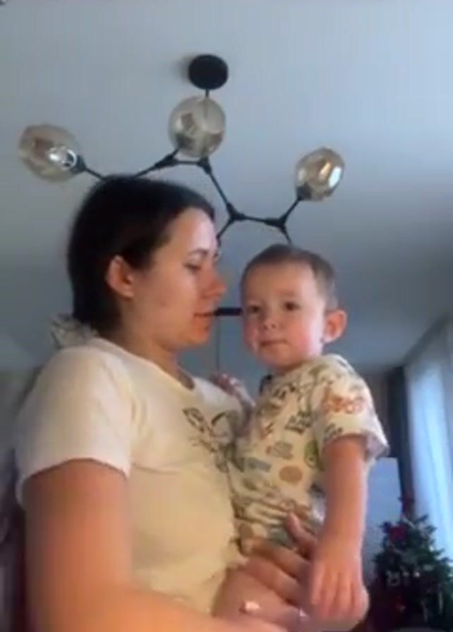 A woman is holding a toddler