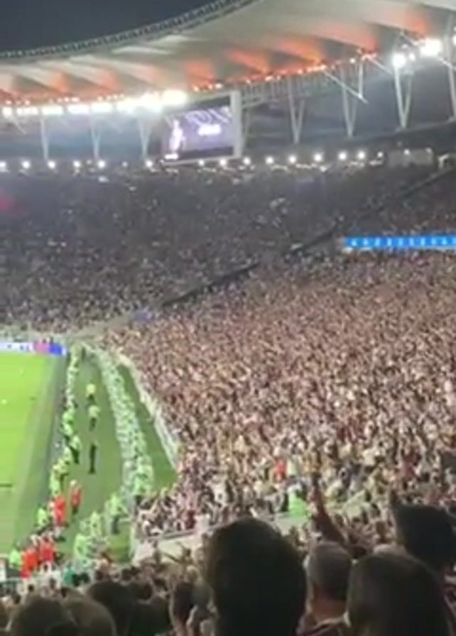 The video captures a massive crowd filling a stadium, possibly for a sporting event
