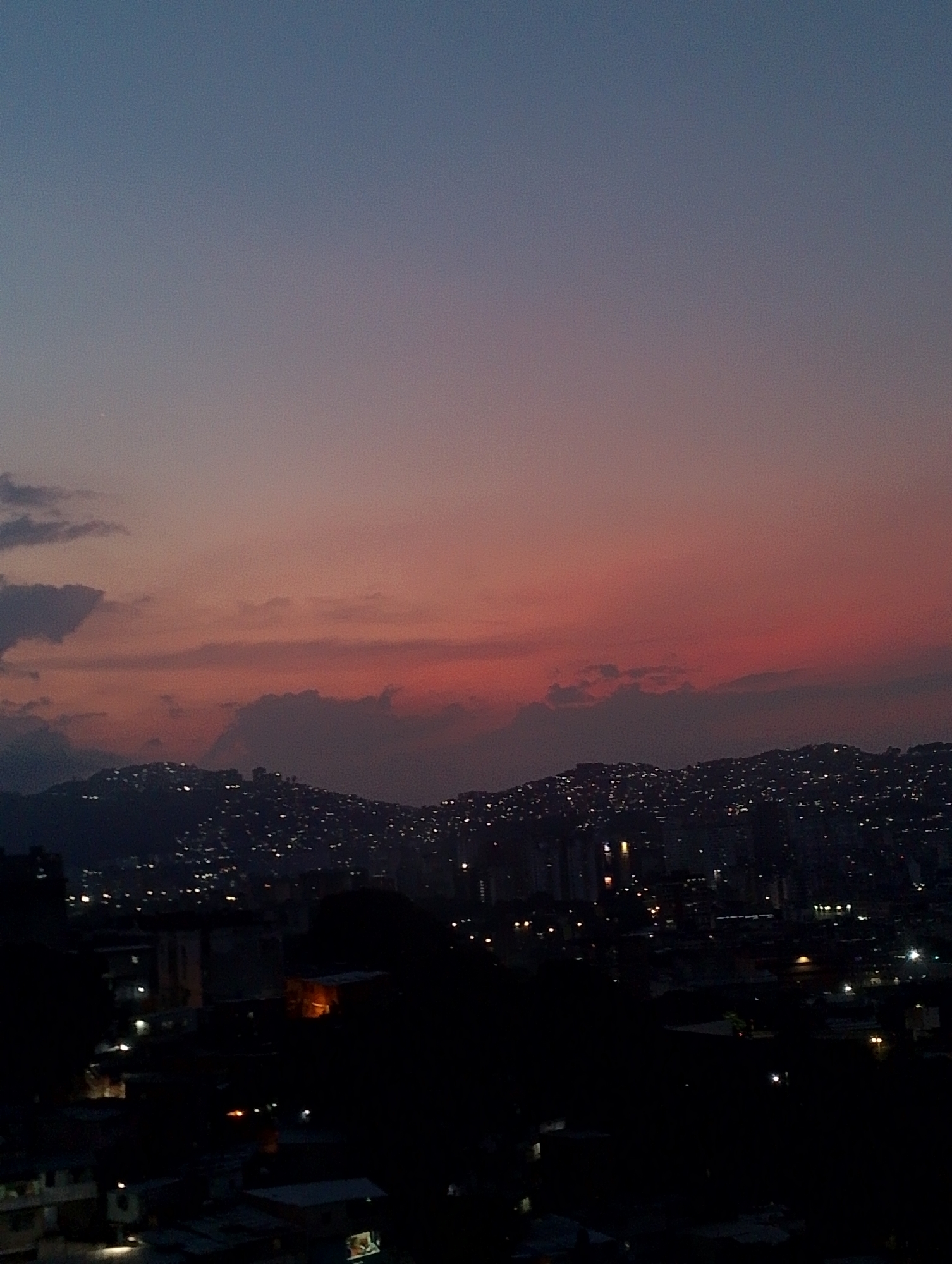 - "cityscape at dusk or dawn, likely in Caracas, Venezuela, given the hilly terrain surrounding the city" by FM-CHVGw2, licensed under CC BY 4.0