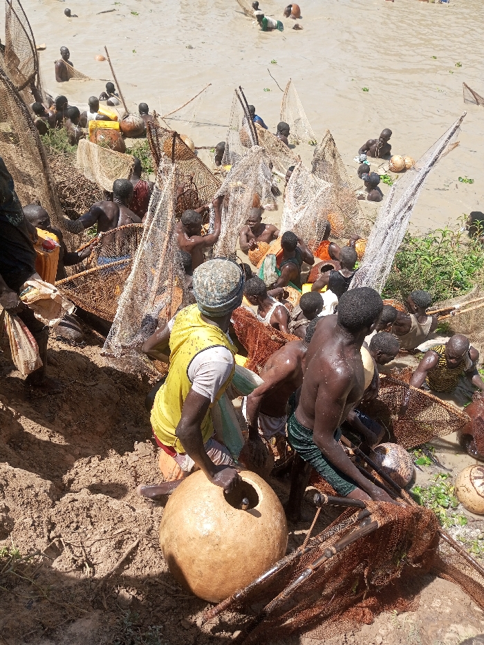 - "This image depicts a large communal fishing operation in a shallow, muddy body of water within Kokani North, Nigeria" by FM-Bivw32, licensed under CC BY 4.0