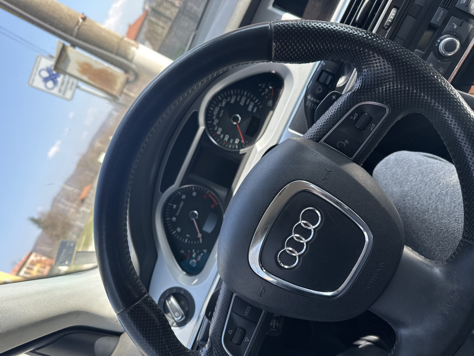 - "The image depicts the interior of an Audi vehicle, specifically the steering wheel and dashboard, with an external view through the windshield under a clear blue sky in Zlatna Panega, Bulgaria" by FM-7oOou1, licensed under CC BY 4.0