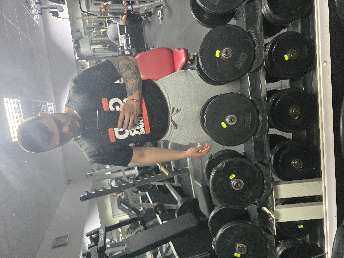A mirror selfie depicts an indoor gym setting in Byala, Bulgaria