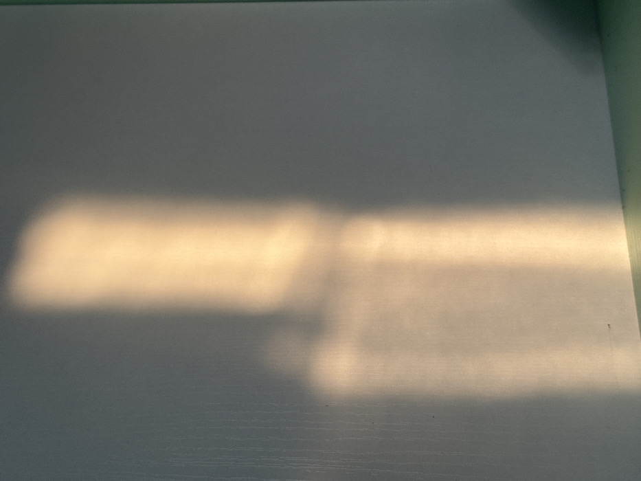 flat, light-colored surface, likely a tabletop or wall