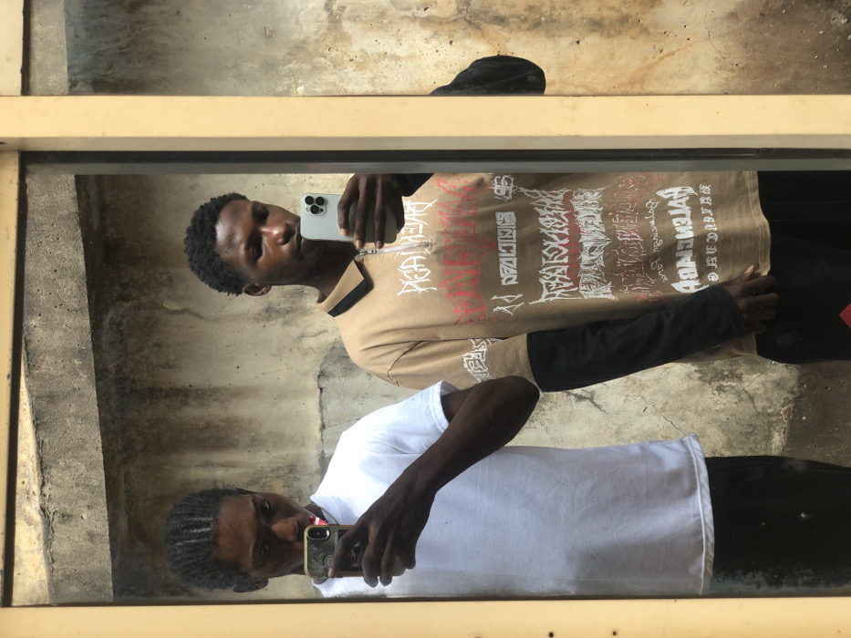 Two young adult males are depicted in a mirror reflection, situated in Enugwu-Ukwu, Nigeria