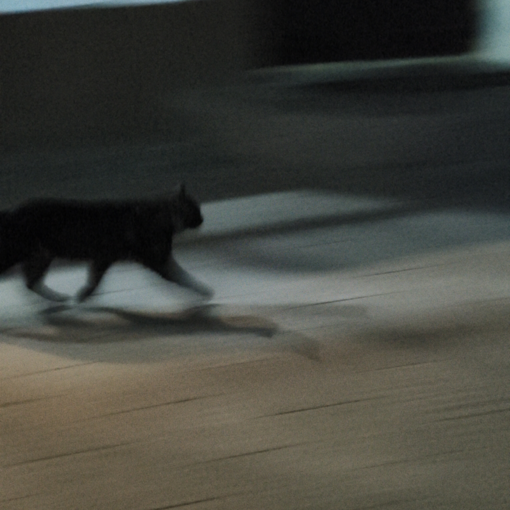 - "dark, blurry figure of a cat in motion, likely running" by FM-TzA0d2, licensed under CC BY 4.0