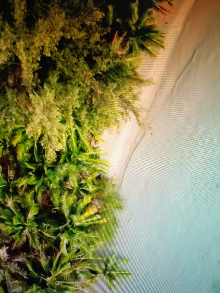 close-up view of the top of palm trees growing on the beach at the northern end of Netanya, Israel, near the coordinates 32