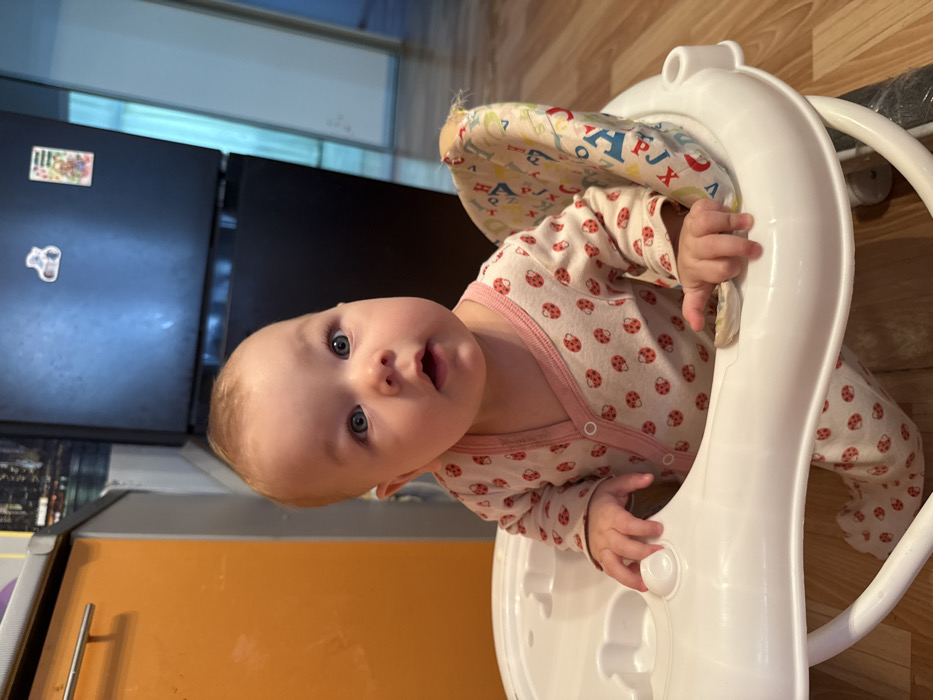 - "A baby with blue eyes and blonde hair is in a white walker" by FM-NiMIj1, licensed under CC BY 4.0