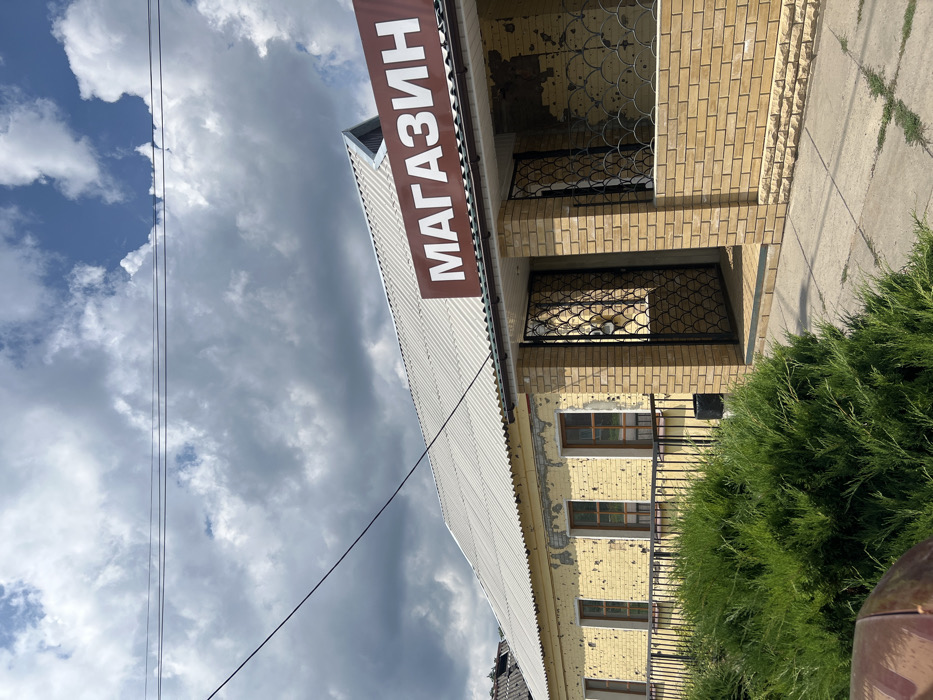 - "This image depicts a single-story commercial building, identified as a "МАГАЗИН" (MAGAZIN/SHOP) by a prominent brown sign with white Cyrillic lettering, located in Staryi Saltiv, Ukraine" by FM-xSHov1, licensed under CC BY 4.0