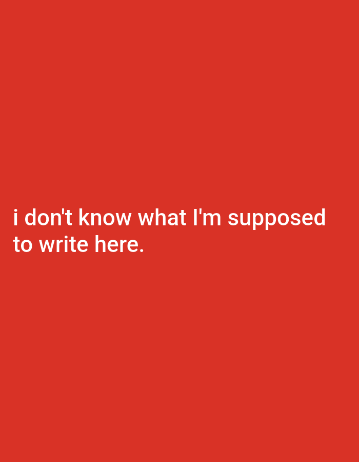 The image is a solid red background with the text "i don't know what I'm supposed to write here
