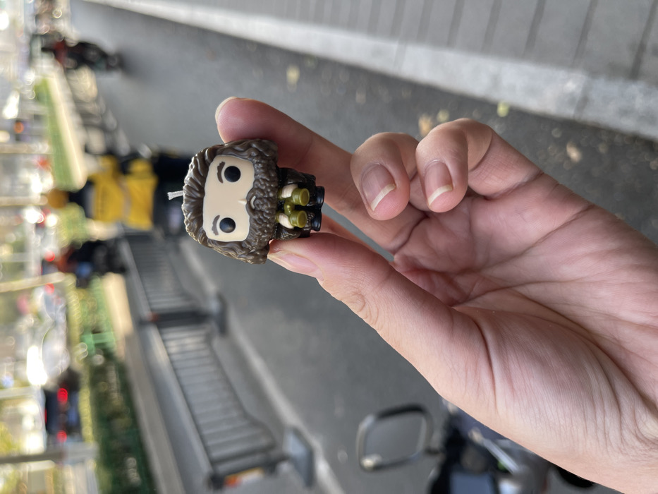 - "A hand holds a Funko Pop figurine of a character with dark curly hair and beard, and goggles attached to the head" by FM-oJoph1, licensed under CC BY 4.0
