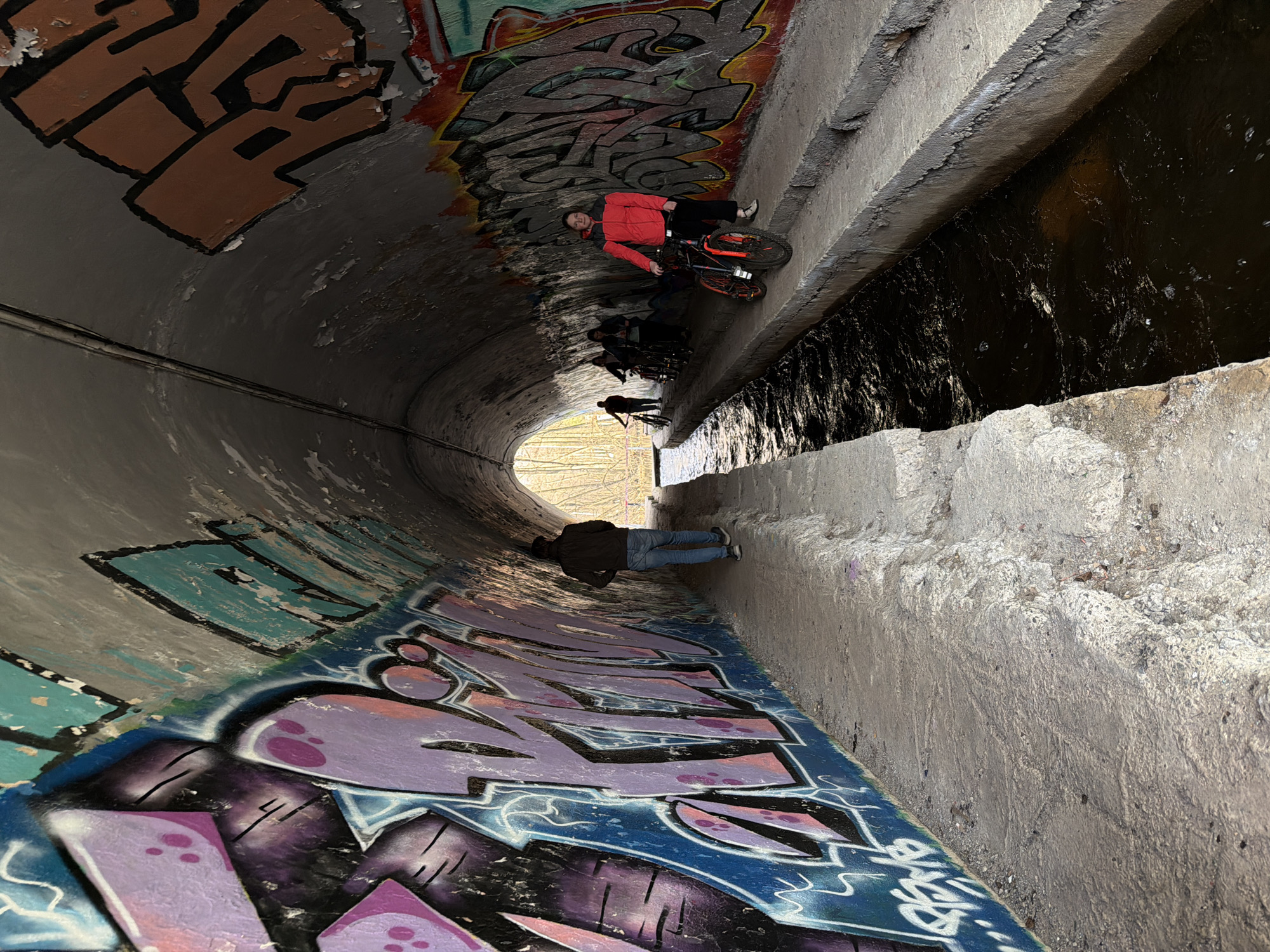 - "A low-angle shot inside a tunnel reveals graffiti-covered walls and a group of people traversing the space" by FM-e1BLf2, licensed under CC BY 4.0