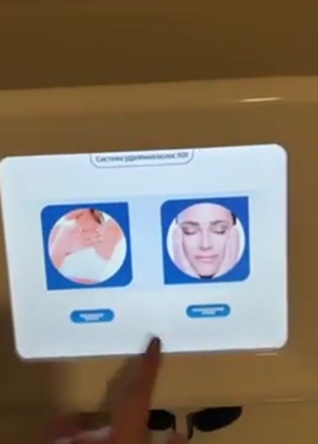 person using a touchscreen on a white piece of medical equipment. The person first selects "system 808" on the screen. Then they select an image of a person’s upper body. They then use their finger to increase a pulse setting on the screen from 10 to 16.