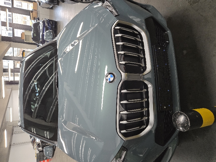 - "The image displays a stationary, muted gray-green BMW X-series SUV positioned centrally, facing the viewer, inside what appears to be a car dealership showroom or service area in Sprendlingen, Germany" by FM-6Qyn03, licensed under CC BY 4.0