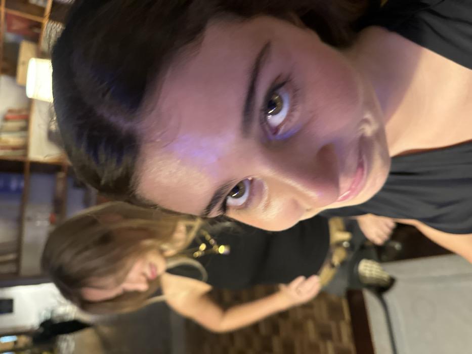 This image captures an indoor scene in Lisbon, Portugal, featuring two females under warm, dim lighting