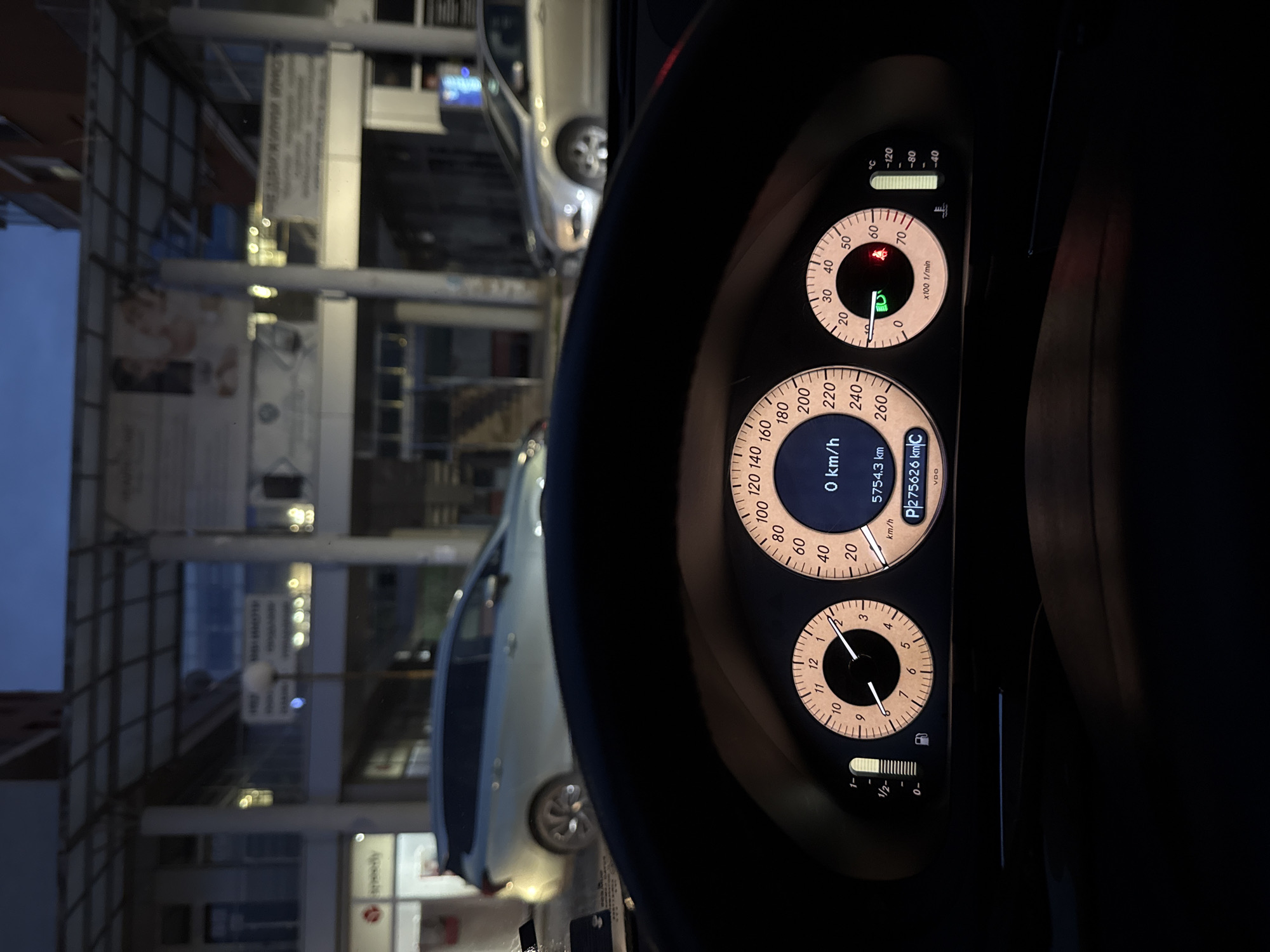 dashboard of a car, indicating it is stationary at 0 km/h with a mileage of 5754