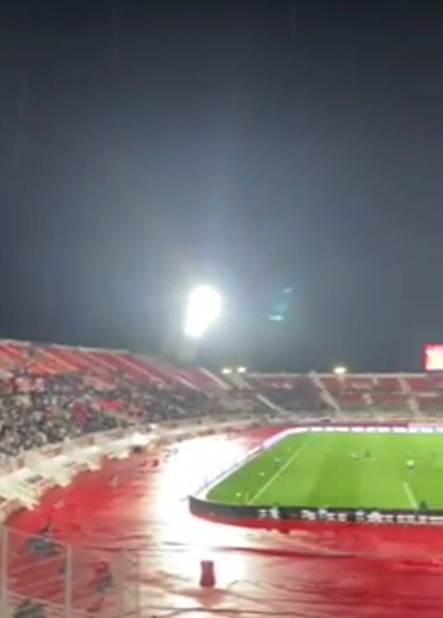 football stadium during a rainstorm