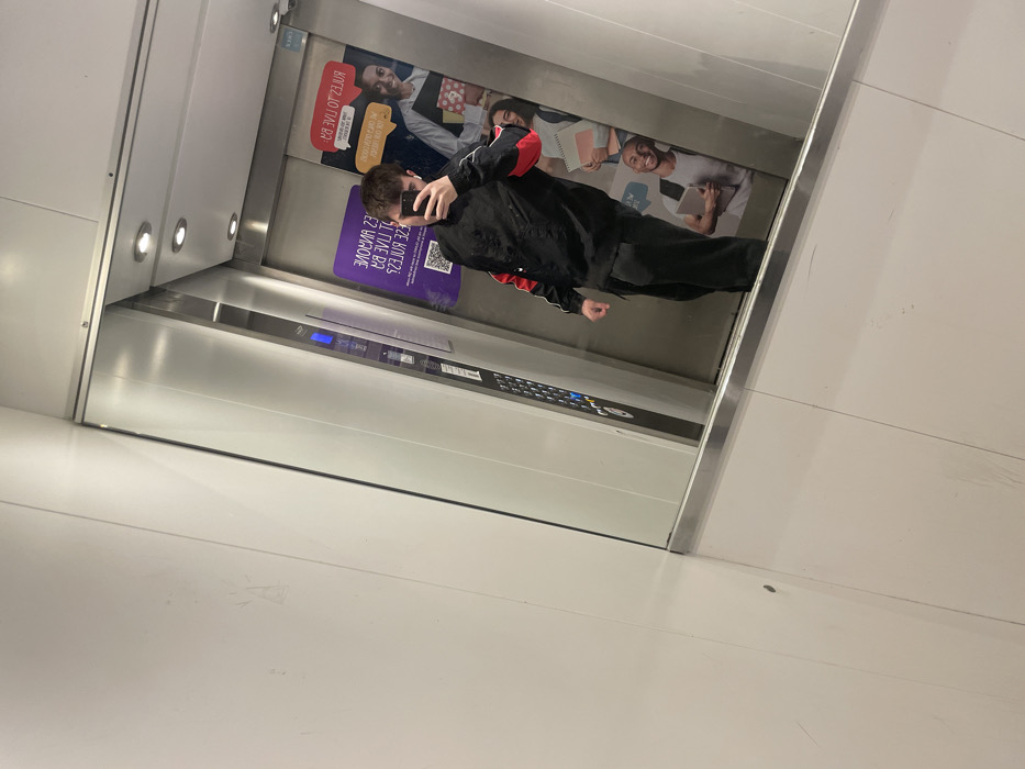 - "The image captures a mirror selfie taken inside an elevator at The Social Hub The Hague (formerly The Student Hotel), located at Hoefkade 9, 2526 BL The Hague, Netherlands" by FM-MXCJ03, licensed under CC BY 4.0