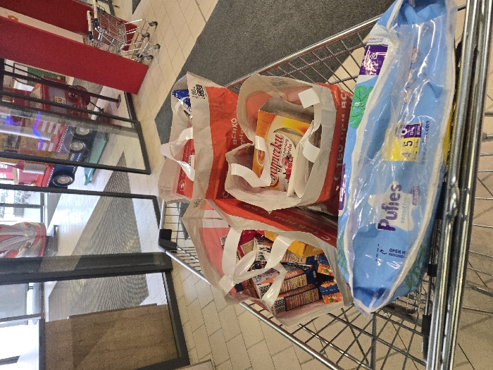 - "The image displays a metal shopping cart filled with purchased items, positioned within a retail establishment, likely a supermarket, in Sofia, Bulgaria" by FM-Z6GXs1, licensed under CC BY 4.0