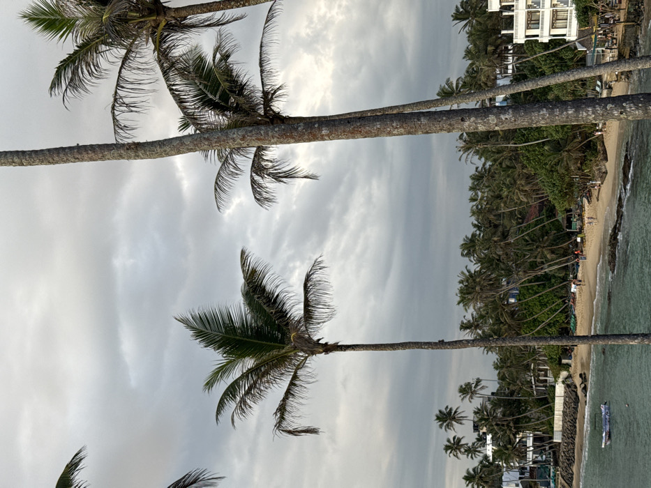The image depicts a coastal scene in Thalaramba, Sri Lanka, under a heavily clouded sky