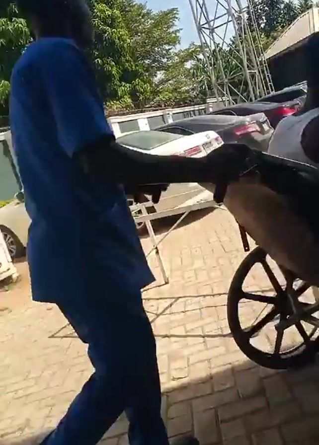 The video opens with a man in a wheelchair outdoors, on a brick-paved area