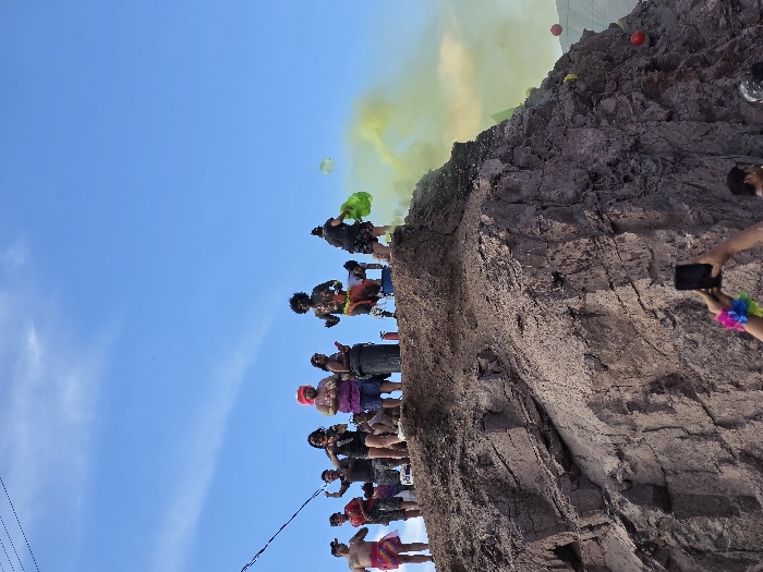 - "A daytime scene depicts approximately 10-15 individuals gathered on the summit of a rugged, dark brown rocky outcrop, set against a clear blue sky with minimal cloud cover in Iquique, Chile" by FM-acavi1, licensed under CC BY 4.0