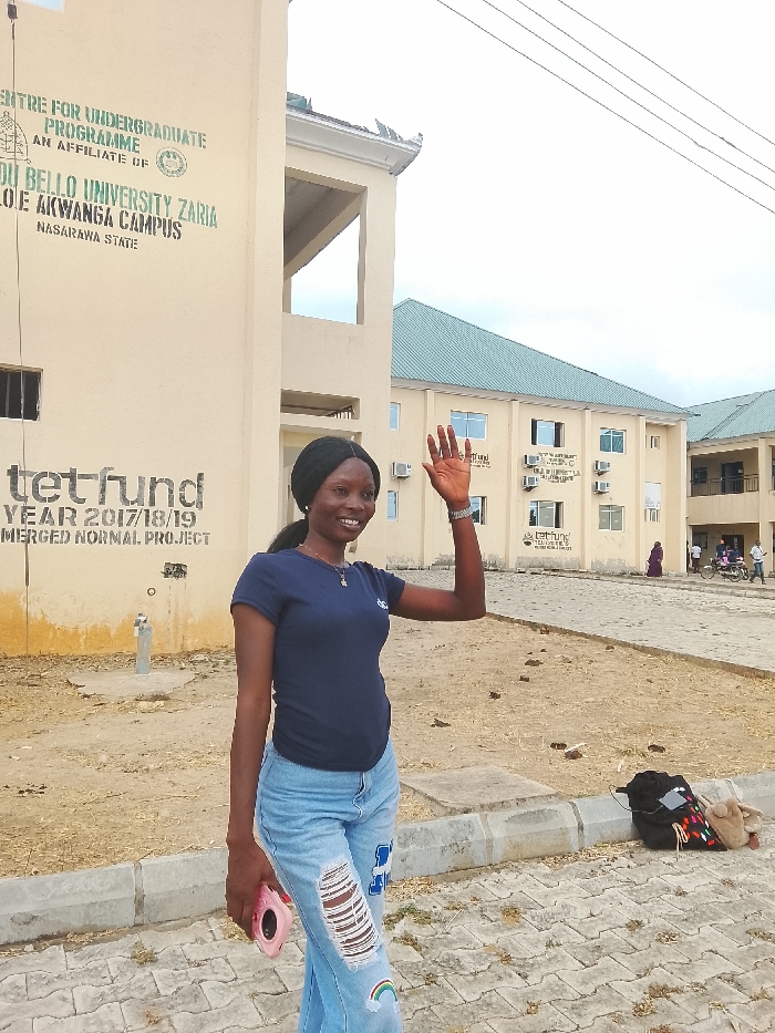 The image displays an outdoor scene at the Ahmadu Bello University Zaria, College of Education Akwanga Campus in Akwanga, Nasarawa State, Nigeria