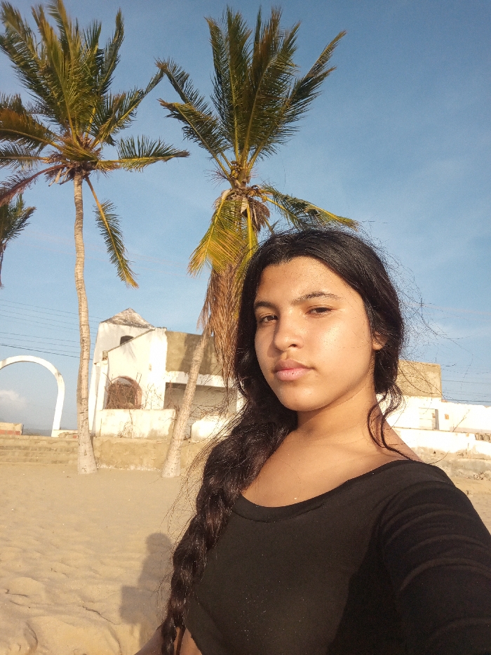 - "The image presents a close-up portrait of a young female subject situated outdoors on a sandy beach in Juan Griego, Venezuela" by FM-aHka52, licensed under CC BY 4.0