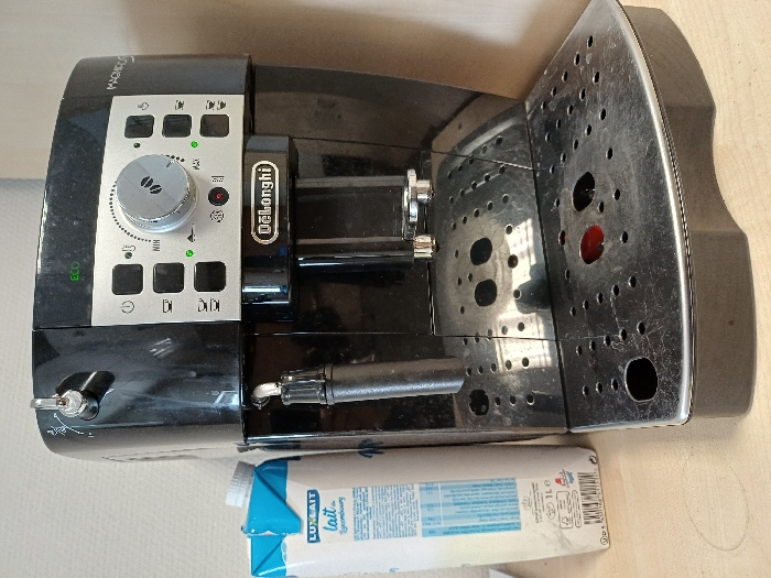 - "A black DeLonghi Magnifica automatic espresso machine is positioned on a light-colored countertop" by FM-XnDpo2, licensed under CC BY 4.0