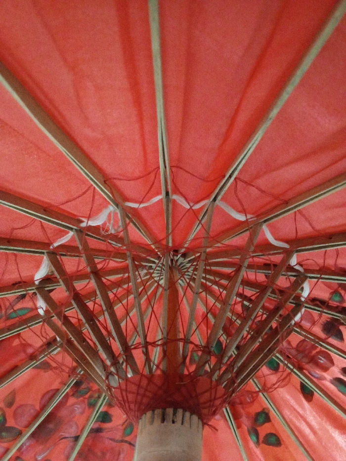 - "The image displays an upward-looking view into the interior of a large, opened parasol located in Longmiang, Laos" by FM-vUvC13, licensed under CC BY 4.0