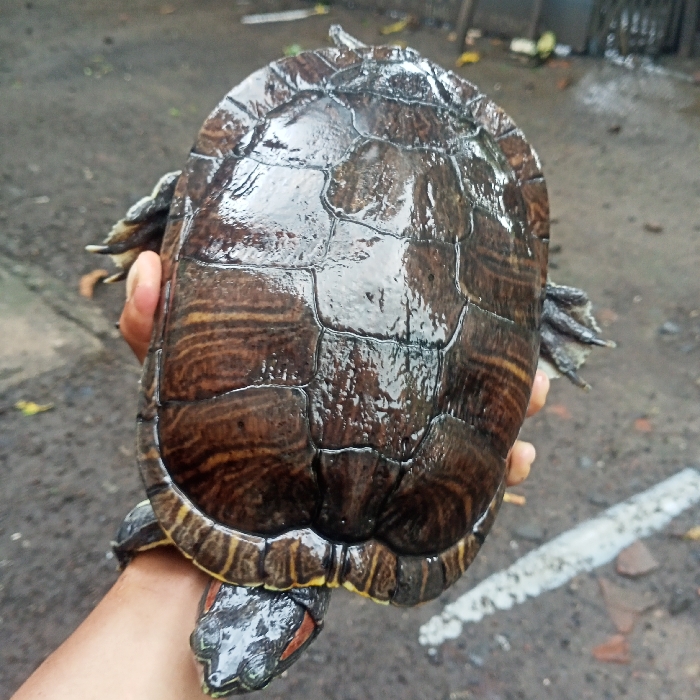 - "A shiny red-eared slider turtle is held in a person's hand" by FM-cHJi83, licensed under CC BY 4.0