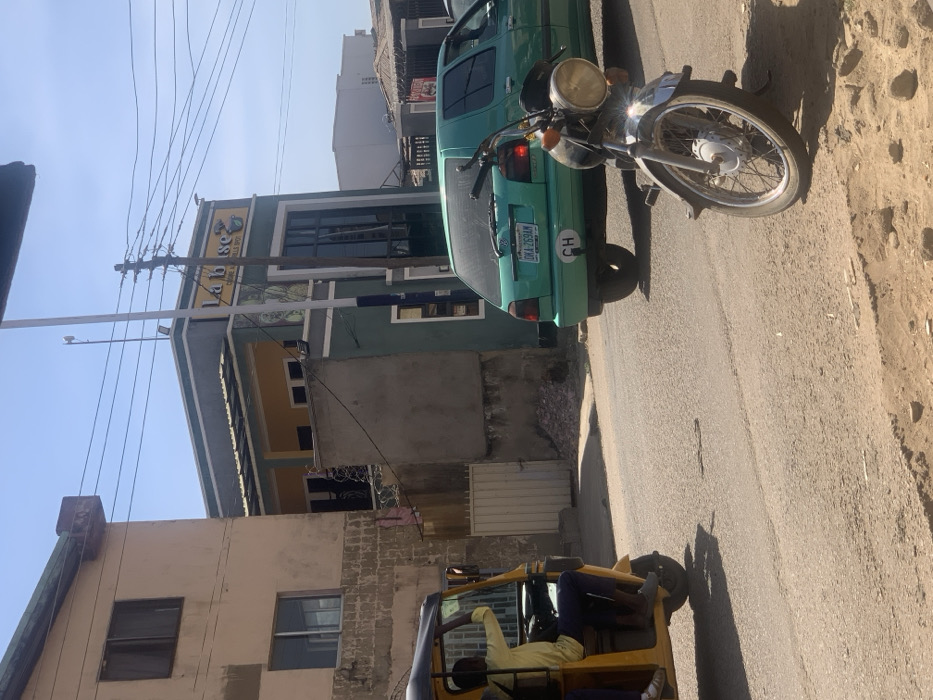 The image depicts an urban street scene in Shaba, Nigeria, under clear daylight conditions