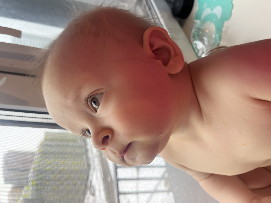 - "This image presents a close-up, eye-level view of an infant positioned indoors near a window, looking upwards and to the left" by FM-v5Wx12, licensed under CC BY 4.0