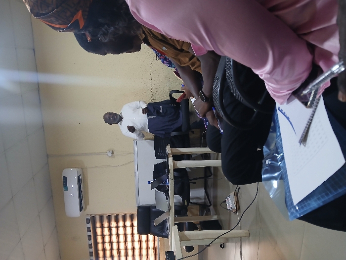 The image displays an indoor presentation or meeting scene in Markurdi, Nigeria