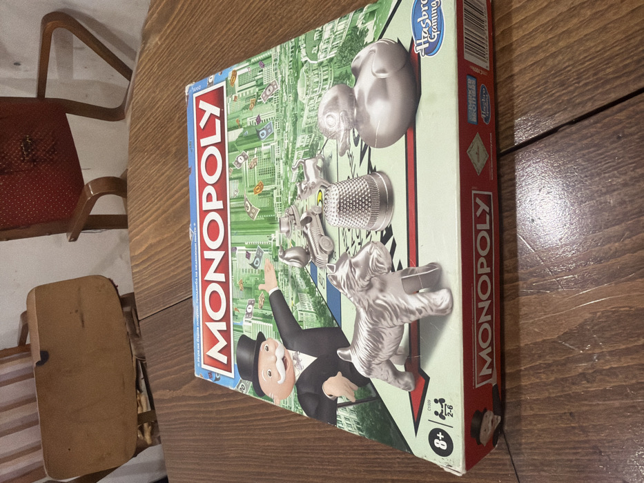 - "A Monopoly board game box is positioned diagonally on a multi-paneled wooden table" by FM-k9rQ42, licensed under CC BY 4.0