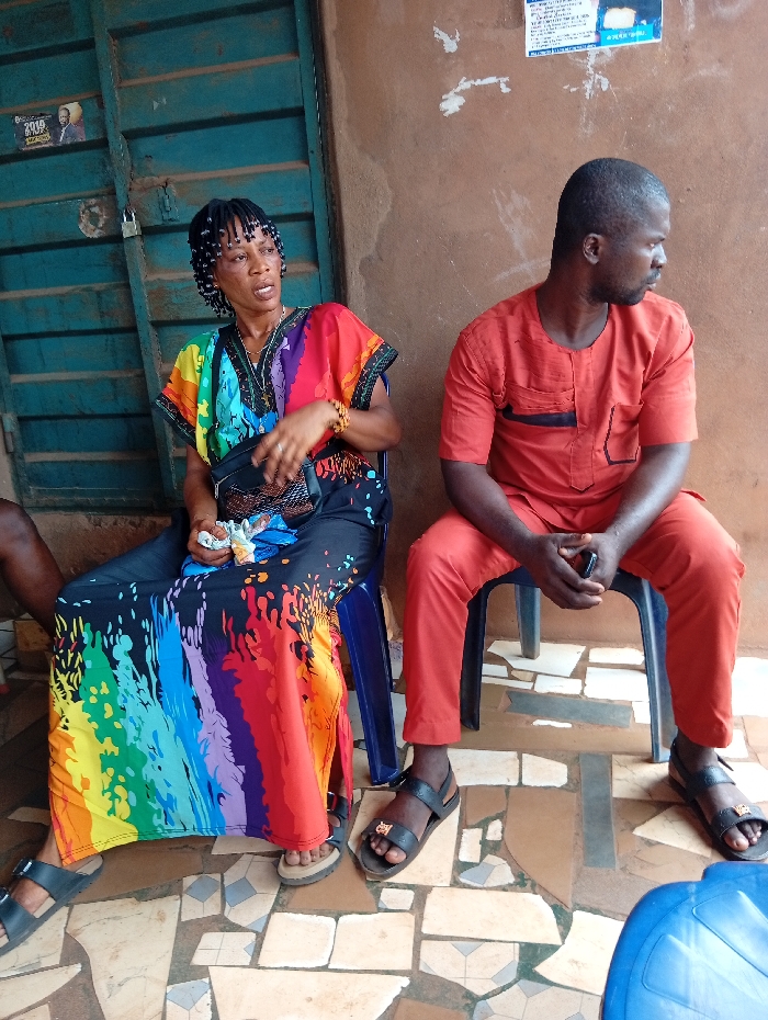 Two individuals are seated outdoors in the city of Ogidi, Nigeria
