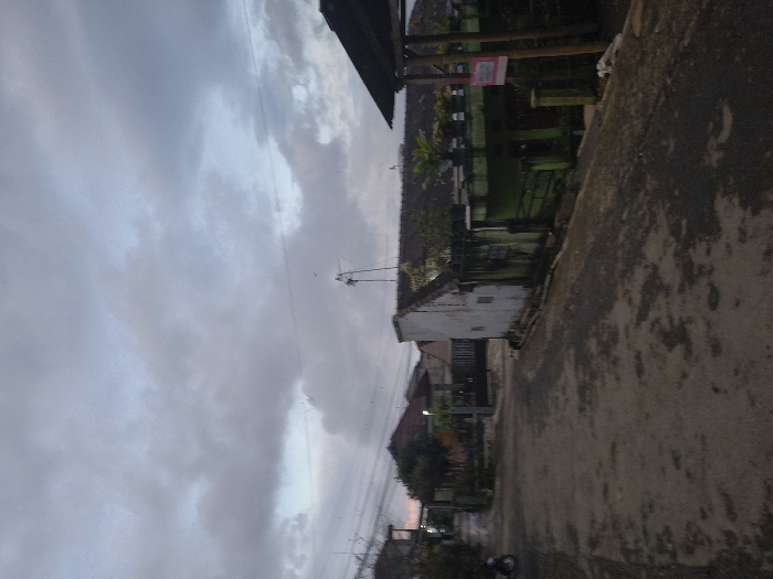 A street view under a cloudy sky