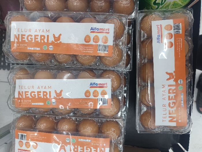 - "Inside an Alfamart store in Maleber, Indonesia, multiple transparent plastic cartons of brown chicken eggs are displayed on a retail shelf" by FM-WRTkH2, licensed under CC BY 4.0