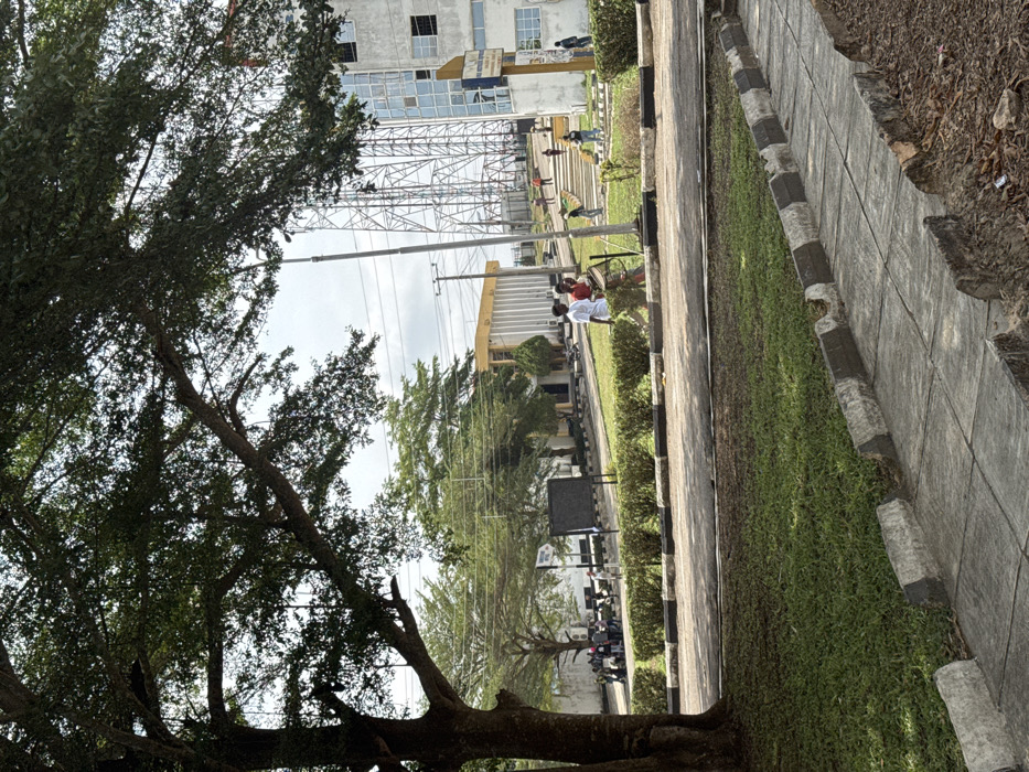 An outdoor scene captured under a bright, possibly overcast sky, depicting a section of what appears to be the University of Ibadan campus in Ibadan, Oyo State, Nigeria