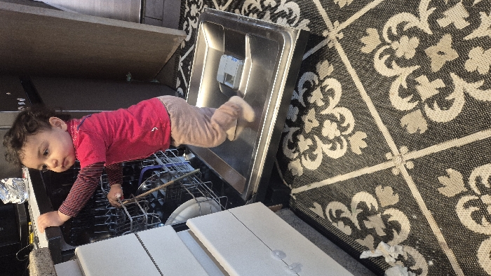- "This image depicts a young child, approximately a toddler, standing barefoot within the opened door of a kitchen dishwasher in Melle, Belgium" by FM-IS3x72, licensed under CC BY 4.0