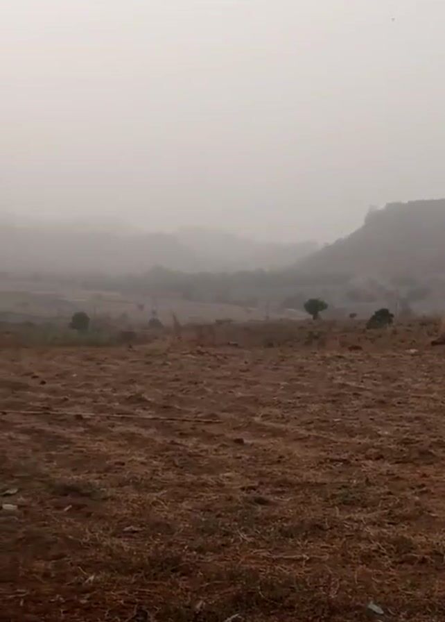 brown, barren landscape in Niger State, Nigeria, partially obscured by a thick fog