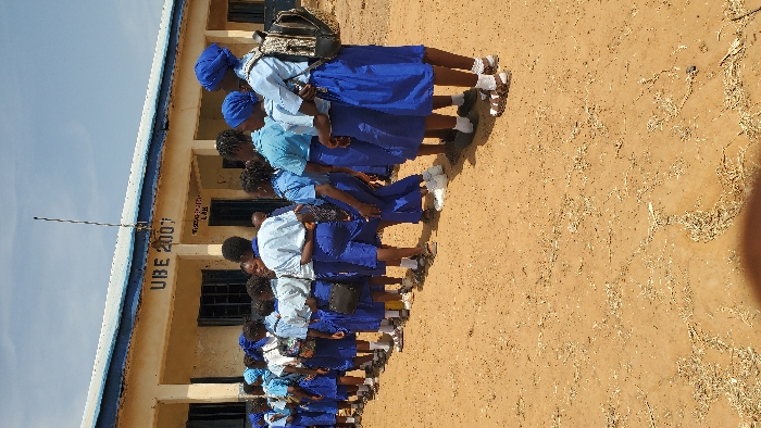 The image captures a daytime outdoor scene at a school in Akwanga, Nigeria