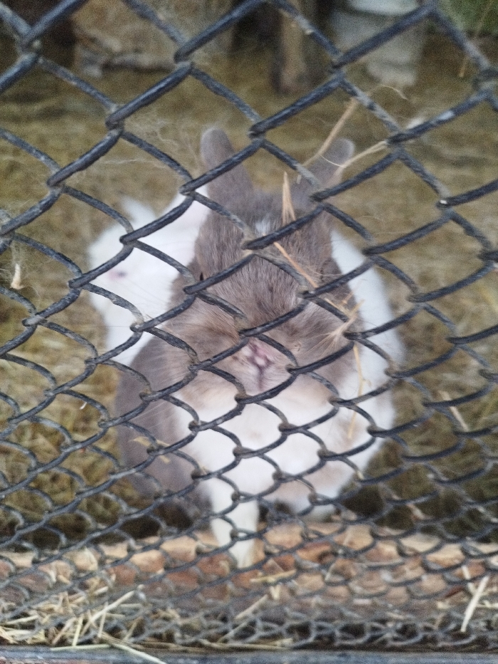 - "The image displays two rabbits within an enclosure, viewed through a prominent black chain-link fence" by FM-KEI273, licensed under CC BY 4.0