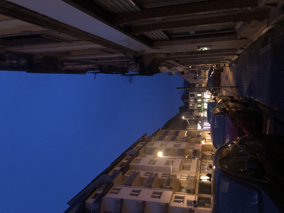 - "A low-angle shot of a narrow street at dusk" by FM-vXe4F3, licensed under CC BY 4.0