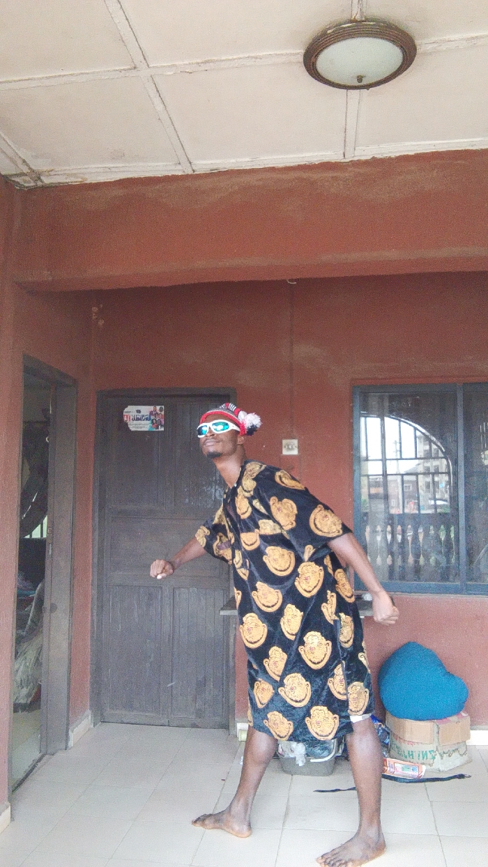 - "A dark-skinned male subject stands barefoot on a tiled floor in what appears to be a covered outdoor corridor or veranda of a building in Onitsha, Nigeria" by FM-Jqbih2, licensed under CC BY 4.0