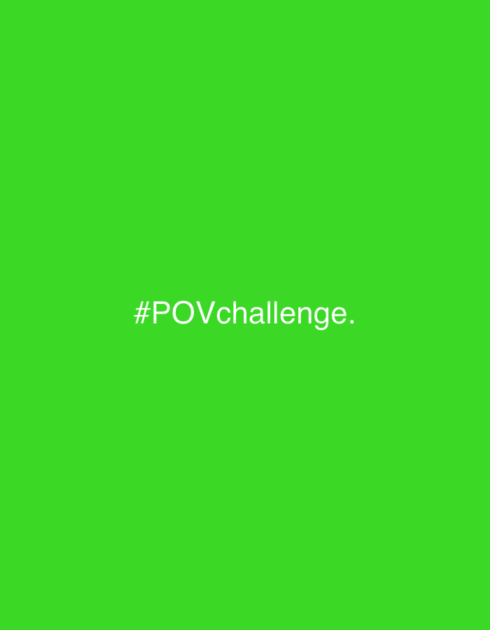 The scene, located in Yuzhong District, China, consists of a solid, uniform field of bright green color filling the entire frame. Centered horizontally near the bottom edge of this green background is white text, rendered in a sans-serif typeface, which reads "#POVchallenge.". No other subjects, objects, individuals, actions, interactions, or environmental details are visible within the image.